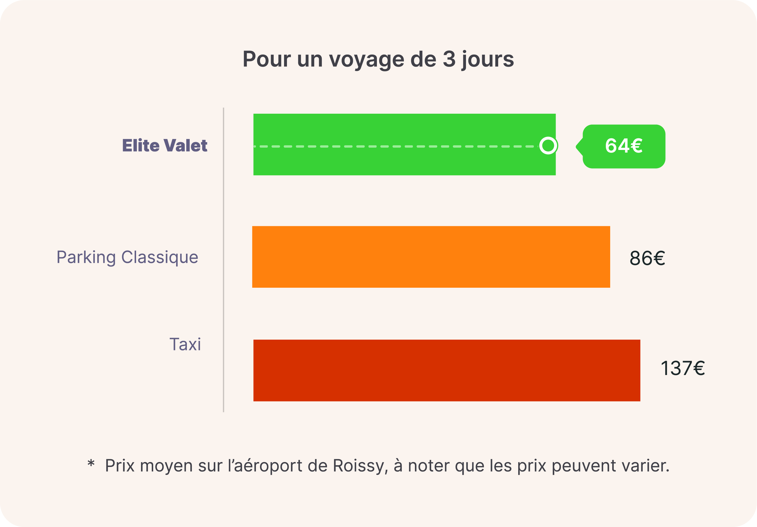 En choisissant Élite Valet Charles de Gaulle, vous bénéficiez non seulement d'un service de voiturier pratique et sans souci, mais également d'une économie importante. En moyenne, nos tarifs sont 30% moins chers qu'une place de parking à l'aéroport. Pourquoi payer plus pour moins de confort ? Avec nos services vous économisez de l'argent tout en profitant d'un service haut de gamme qui prend soin de votre véhicule pendant que vous voyagez.